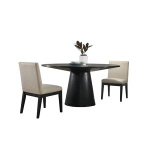 Jasper Ebony Black 3 Piece 59″ Wide Contemporary Round Dining Table Set with Beige Fabric Chairs