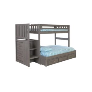 Solid Pine Mission Staircase Twin over Full Bunk Bed with Four Drawer Chest