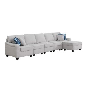 Leo Light Gray Linen 6 Seater Sofa and Ottoman