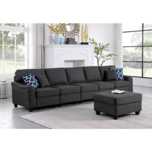 Leo Dark Gray Linen 6 Seater Sofa and Ottoman