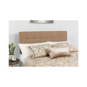 Tufted Upholstered Queen Size Headboard in Camel Fabric