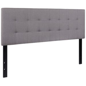Tufted Upholstered King Size Headboard in Light Gray Fabric