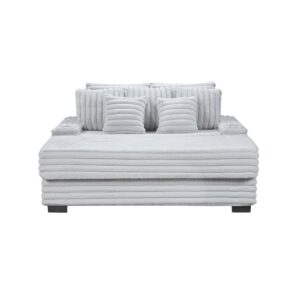 Curved form in faux shearling upholstery Slightly flared steel legs Comfortable foam padding Some assembly required CORE