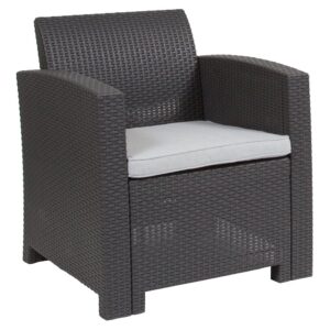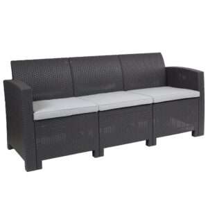 Outdoor couch provides seating for up to three