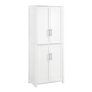 The Essen Stackable Kitchen Pantry Storage Cabinet offers versatile storage options for your home. This accent cabinet has adjustable shelves that accommodate everything from dishes to books. Elegant storage cabinet doors feature a classic recessed-panel design. Stack two of these small pantries on top of each other to maximize your storage without sacrificing floor space.