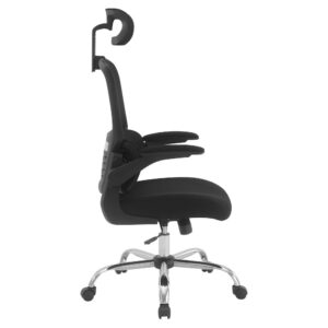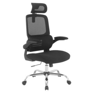 Faux leather seat and back with built-in lumbar support Locking tilt control with adjustable tilt tension One-touch pneumatic seat height adjust Padded flip arms Heavy duty chrome base with dual wheel carpet casters Intended for residential use only