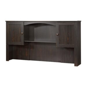 Add a little extra storage to your home office with this hutch from the Heritage Hill collection. This desk hutch features cubbyhole storage for binders, books, your planner, or stacks of important papers. Two adjustable shelves provide you with room for all your office essentials no matter their shape or size envelopes, manuals, snacks and more! This desktop hutch also features two framed, safety-tempered glass doors for transparent storage of organizing bins, old textbooks, and home dcor. For a completed look, this hutch attaches to Computer Credenza 404944 to increase your storage and display space of the credenza you already know and love. Finished in Classic Cherry, this hutch for desk is the solution for all your storage woes. We hope you like what you see. Sauder designers travel the world and bring back the best and latest in style, finish, and color trends. This inspiring world travel is evident in the cutting edge and innovative furniture solutions we offer to you!