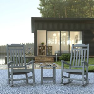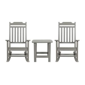 Extend the time you spend outdoors with this set of 2 commercial grade rocking Adirondack chairs and 22″ round fire pit. Lending a restful atmosphere to any environment, this 3 piece outdoor set is ideal on your concrete patio, in the backyard, or can be transported to your campsite. The fire pit includes a spark screen, grate, and poker to help you manage your wood burning fire. Constructed from polystyrene and UV treated, the set of 2 classic Adirondack rocking chairs won’t chip, splinter or peel, are lightweight and easily portable. Metal screws securely join all pieces allowing the chairs to hold up to 350 lbs. static weight. The outdoor fire pit is made from iron and is coated with a hight temperature paint. A lower band not only looks great but also gives greater stability to the fire pit. Assembly for your new poly resin rockers takes less than 30 minutes each while the portable fire pit goes together in 10 minutes or less. A damp cloth maintains the appearance of your chairs while the camping fire pit cleans with a citrus based degreaser and nylon brush.