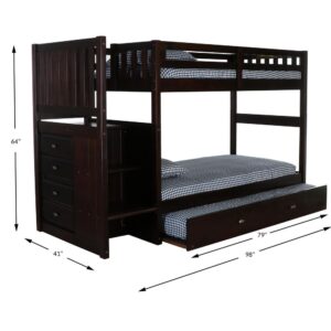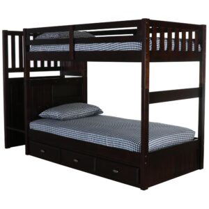 This ready-to-assemble unit in a fashionable light ash finish features a twin over full bunk bed with an under bed twin sized trundle unit. Quality and solid wood construction makes this bed a great buy.