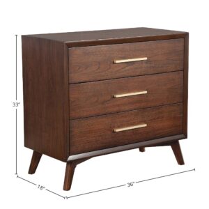 The Switchgrass Chest from American Woodcrafters brings a breezy and fresh coastal style to your space. Offered in a painted Dove finish, this chest features five spacious drawers, providing ample storage while maintaining an elegant aesthetic. Its design incorporates accents of woven and filled rattan, complemented by an antiqued whitewash finish, seamlessly blending functionality and style. The tapered, step-out silhouette adds a touch of sophistication, making it an ideal addition to any transitional coastal-themed bedroom.