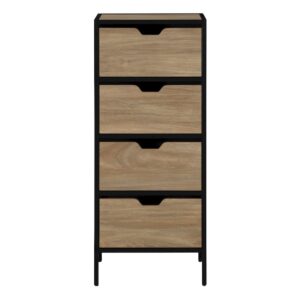 An architectural beauty with style and function at the forefront. This dramatic 6-drawer dresser from the Trestle collection delivers a unique look, with angled legs and classic hardware accents. This bedroom dresser has six spacious drawers that open and close on smooth metal runners for easy access storage of a variety of different items: from stacks of slacks and T- shirts to your collection of leggings and cozy sweatshirts. Each drawer is detailed with attractive period hardware that gives it an extra touch of style. And to save you time, the drawers utilize a T-lock assembly process. The spacious top surface of this double dresser provides you with additional space to store other bedroom essentials or display home dcor items like an accent lamp, bottles of perfume, your makeup bag and photos of your family and friends too! Finished in a dark Raven Oak, this dresser with drawers provides a bedroom furniture option for clothes storage and more.